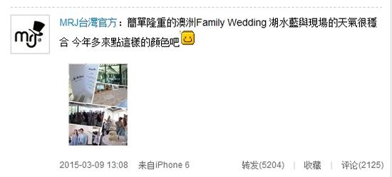 MRJ台湾官方微博上传婚礼照片