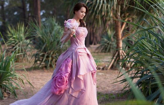 粉红色的嫁衣有着小女生的甜美