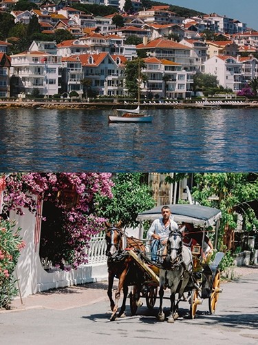 离伊斯坦布尔不远处有一个面积不大的马尔马拉海,在海的东北海面上点缀着大小不一的9座小岛,乘船不到半小时即可到达土耳其的避暑胜地王子岛。岛上有一条10英里左右的盘山道,只有南面的山道较陡。来到这里你可以乘坐马车花上两个小时的时间游览整个岛的风光。