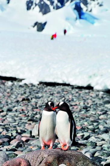 每次登陆南极都是与企鹅和海豹亲密接触的好机会,这两种数量最多的“居民”让冰冷的南极大陆充满生机。在这里,一切行动要遵从企鹅、海豹优先的原则,比如在陆地上见到帽带企鹅和巴布亚企鹅憨态可掬地走在“企鹅高速”公路上时,就一定先要避让。懒洋洋的海豹虽然常如雕塑般一动不动,但它们也不永远那么友善,如果偶遇海豹先生还是敬而远之吧,因为这种看起来呆萌的生物可是会将企鹅当作美餐的!