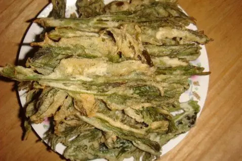 速冻的香椿从冰箱拿出来解冻后,最好的方法是炸着吃。因为经过冷冻的香椿再凉拌吃,口感就没有那么好了。炸香椿的时候,先用鸡蛋和面粉调成糊,放点儿盐,撒点儿花椒,然后把香椿挂上糊,下锅一炸,味道非常香。