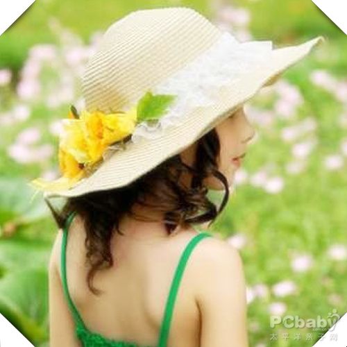 米黄色底色大边缘草帽,配上白色蕾丝边和黄色花朵,使这顶帽子顿时增色不少。最俏皮的是点缀在帽檐旁边的一片绿叶,让这顶帽子显得生机勃勃。