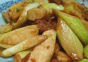 3. 然后下入茭瓜,再放入上列调料稍焖,收汁后取出晾凉;