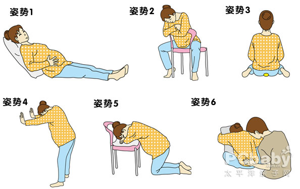 稍微改变姿势即能意外地缓和难过的阵痛。所以阵痛中最好采取舒服的姿势度过。从一些介绍的姿势中,选择自己感觉舒服的姿势,积极试试看。