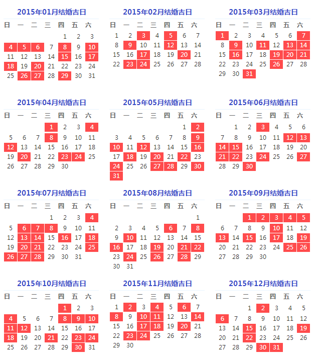 2015年结婚吉日一览表