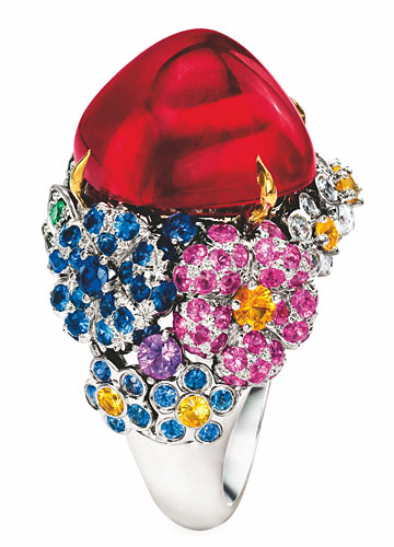 “Cocktail Ring”是20 世纪五六十年代美国禁酒令颁布后,叛逆的上流社会私办带有酒精饮料的Party,女士们在参加昏暗的鸡尾酒Party 时的佩戴高调的大宝石戒指以寻求异性关注。