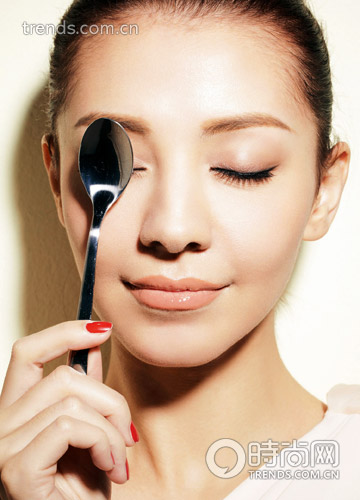 找一把大小能覆盖眼周的中号不锈钢勺,在刷牙洗脸之前放进冰箱内,洗漱完毕再拿出来,涂眼霜之前轻压在眼周,能有助眼部水分排除。