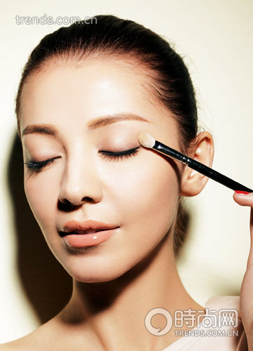 轻柔修饰感的咖啡系眼妆最有消肿效果。不过注意不要单纯用咖啡色做烟熏,同时也要注意提亮,用珍珠色或者柔金色,在眼窝轻扫,并点亮眼角。下眼睑也一定不要过度渲染,轻扫一些浅咖啡色眼影就够了。