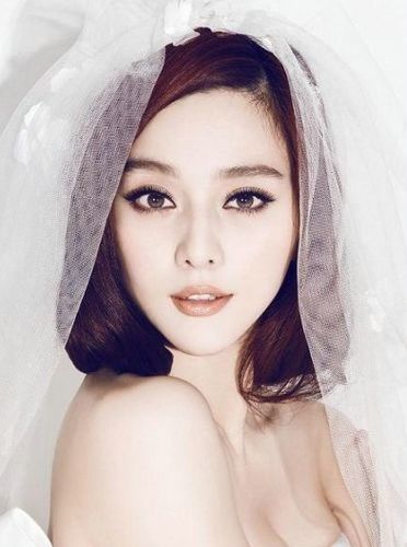 范爷爷玩新娘妆,浪漫白纱搭配蕾丝刺绣花朵点缀在新娘盘起的发髻上,画上精致上下眼线并刷上卷翘型睫毛膏,衬托着玫红双唇,将甜美梦幻进行到底!