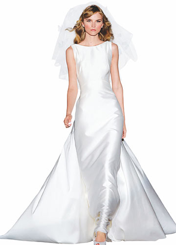 蓬松蝴蝶饰头纱+简单缎面婚纱