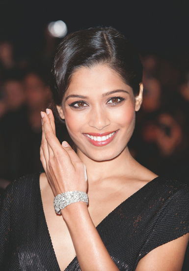 今年10月22 日在伦敦,因《贫民窟的百万富翁》而赢得的2009 年度的奥斯卡金像的女演员Freida Pinto 就佩戴着萧邦铂金镶钻手镯出席影片Trishna 的首映式,在纯净璀璨的光芒中留下了气质非凡的身影,气场十足无人能及。每一个女星都难以抵挡铂金那高贵迷人的魅力,所以铂金首饰也不断出现在她们的每一个重要场合,在一个又一个的辉煌时刻,总与铂金为伴。