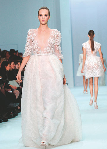 2012春夏巴黎高级定制时装周刚落下帷幕,各大设计师不约而同地选择让美丽如幻的婚纱轻盈地飘在T台上。个性的、唯美的、艺术感的、公主型的……各式婚纱让人应接不暇,快好好感受大师的设计吧,为自己的嫁衣寻找最美的灵感。
