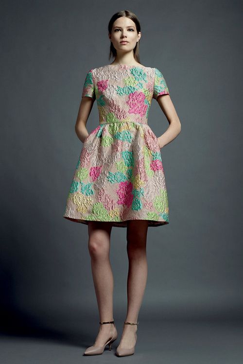 彩色的蕾丝花朵,无袖的简洁小礼服,充满夏日朝气。