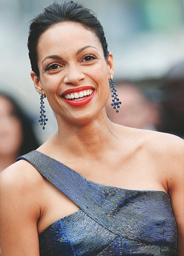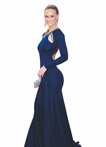 一袭抹胸礼服犹如午夜下漫天繁星的夜空,精致的钻石耳环,让冷艳的颜色平添一抹柔媚。