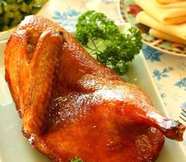 3:烫好皮的鸭子趁热刷上混合好的刷料,等表面干爽以后重复1-2次(如图为刷第一遍);