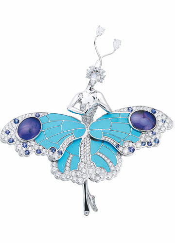 爱情无论在什么年代,无一例外,都是那么的美好。当初涉爱河的韦尔斯利大三学生玛德琳收到作为爱情信物的男大学生联谊会Theta Delta Xi 徽章,她的父亲恭喜这名幸运的男生“钉住了玛德琳”。一直到步入教堂,这枚徽章让她度过了使她在女友们面前飘飘然的大学最后时光。而最甜蜜的则是她收到先生送的结婚礼物,一枚嵌有祖母绿眼睛和红宝石鱼鳞的鱼型胸针,背面是一个表示无穷大的符号,这个暗示最终没有变成现实,当二十三年后他们的婚姻以离婚告终,但在这二十三年中,这枚胸针所寓意的爱情意味,足以成为珍藏一生的美好怀念。谈到胸针爱好者,不得不提到另一个女人,传奇女星伊丽莎白· 泰勒,胸针或许是潜藏在这个女人心底最温柔的记忆。她在和最爱的男人理查· 波顿的婚礼上,唯一佩戴的珠宝是一枚祖母绿钻石胸针;另一件1962 年理查· 波顿专门为她向Tiffany 订制的一枚硕大的海豚胸针,这件礼物让泰勒异常珍爱,因为该胸针的设计师正是当时有“珠宝诗人”之称的Jean Schlumberger,而泰勒是他的粉丝。1965 年理查· 波顿赠送的另一件由Jean Schlumberger 设计的钻石和蓝宝石镶嵌而成的 Fleur de Mer“ 海洋之花” 胸针,完美彰显其设计者的非凡艺术才华,并完美展现了其拥有者——伊丽莎白· 泰勒的迷人魅力之美。