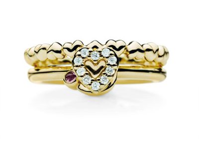 具有法国复古味道的一款新娘婚戒,黄金材质打造的光滑戒环加上双层桃心指环的设计,紫色的的椭圆形宝石将整款戒指的复古感大大的提升,戒环所搭配的小配件设计增加了这款新娘婚戒的厚重感。
