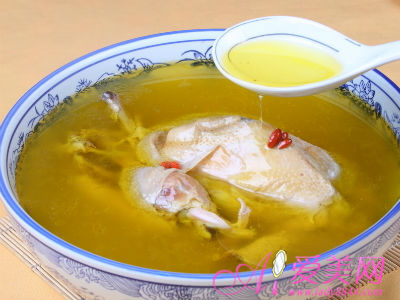 2.将柴鸡与太子参置砂锅中,放入葱、姜、料酒,加清水炖约2个小时,至熟透后加入盐稍煮几分钟即可饮汤食肉。