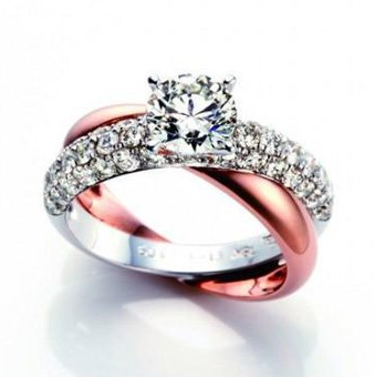 这款婚戒乍看上去像不像两个在舞池中央旋转跳跃的甜蜜爱侣,他们璀璨动人的美丽身影,随着代表着幸福的华美乐章,在婚礼的舞台上展示着曼妙的动人舞姿。设计师以双色金工艺诠释出女人的多种面貌,时而宁静委婉,时而热情耀眼,展现出感性迷人的独特魅力。