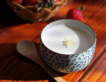 2、在广州做姜汁撞奶都用水牛奶,因为水牛奶的蛋白质含量大于普通的牛奶,可是北方很难买到水牛奶,那怎么办呢?为了增加蛋白质含量,增加成功几率,在鲜牛奶里再加一勺全脂奶粉。有了奶粉的帮助姜撞奶更容易成功;