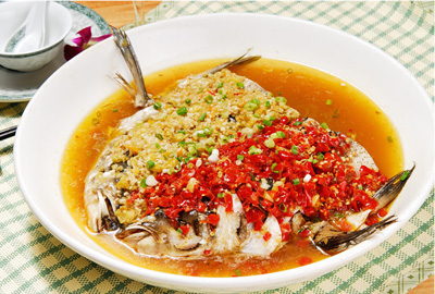调料:食盐3克、姜5片、蒜5瓣、料酒3克、淀粉1把、老干妈1大勺、小葱2根、植物油10克、蒸鱼豉油3克 胡椒粉少许