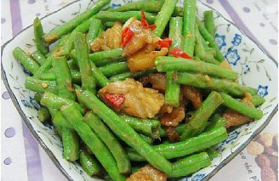 2.五花肉切片、豆角摘成段,蒜蓉拍碎