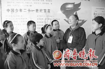 济宁市市中区退休干部谢立亭经常和孩子一起,给他们讲历史、谈未来。(资料片)