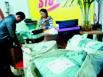 傍晚6时,记者来到申通快递公司新华路派送点,此时正是一天中最忙碌的时候,员工们正在忙着整理收到的快件,发件车每半个小时往返一趟,赶到位于罗庄区的总部,将快件分拣扫描后发往全国各地。