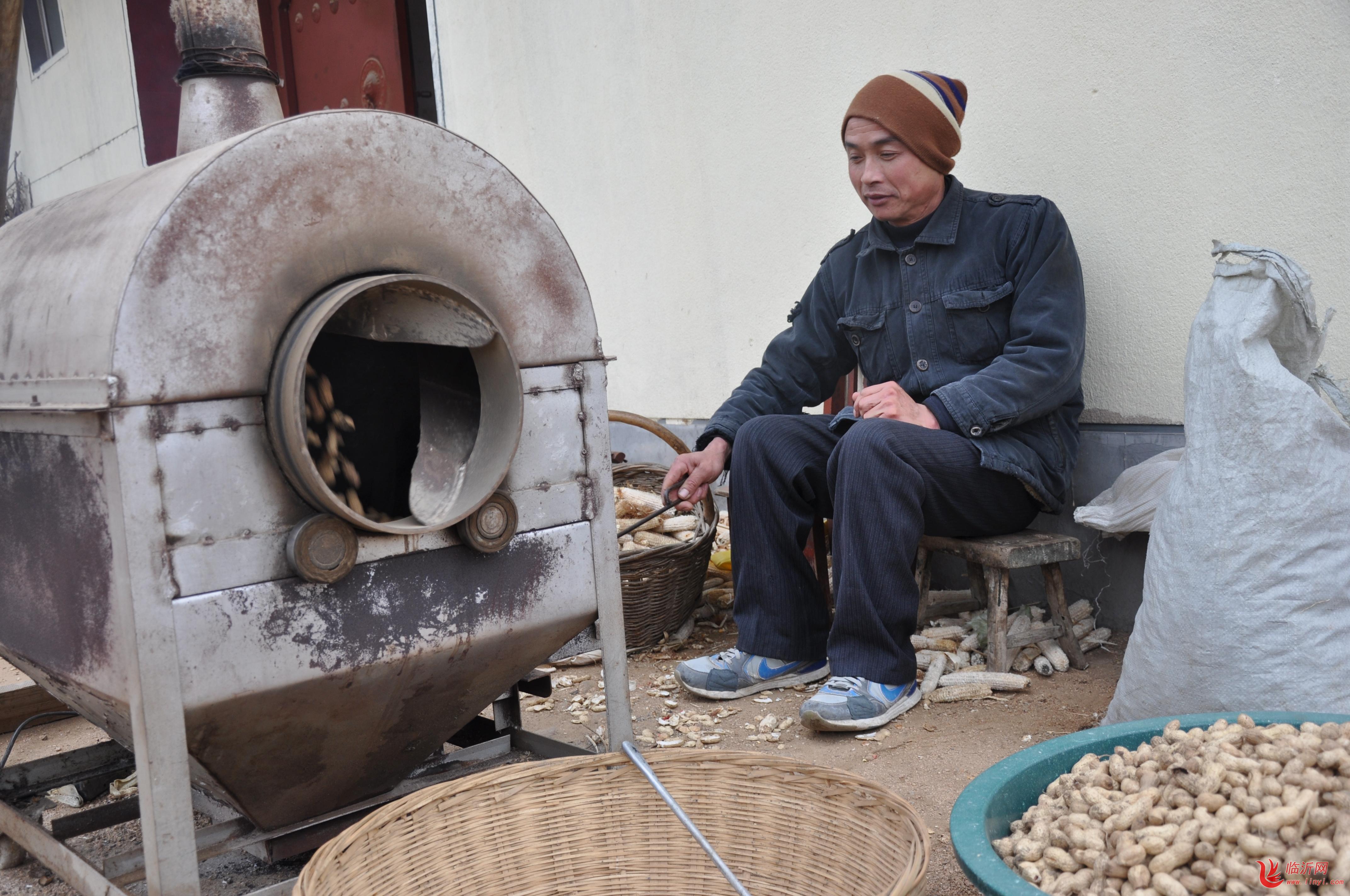 据悉,花生朴实无华,没有苹果、桃子、葡萄、石榴的光鲜,但是可以制油,炒熟了气味香,人们很喜欢吃它。郑山街道各村居的农民都种有一亩或二亩的花生,收获后一部分去壳用来榨油,留一部分带皮炒着吃,逢年过节时其用场可与瓜子、糖块相媲美。图为刘夫庆在家门口为乡亲们炒花生。