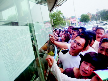 市民争相查看摇号结果。