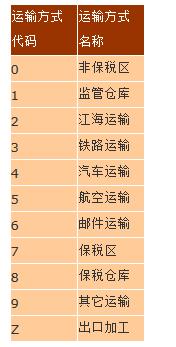 运输方式代码表