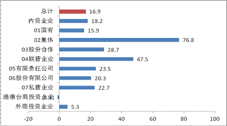 图 9 物流企业主营业务利润增长情况(单位;%)(按登记注册类型分)